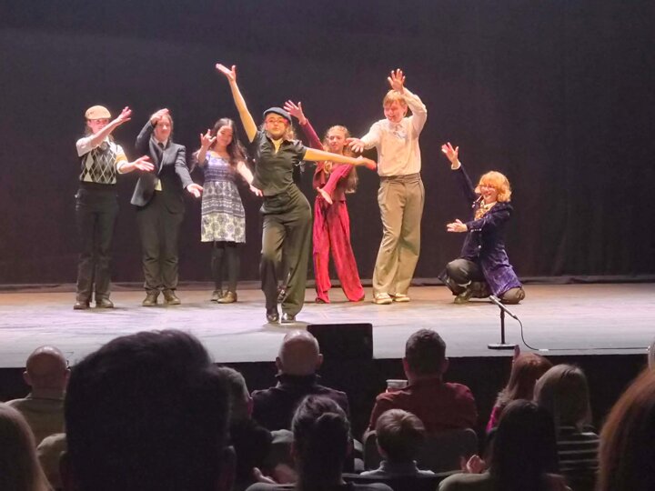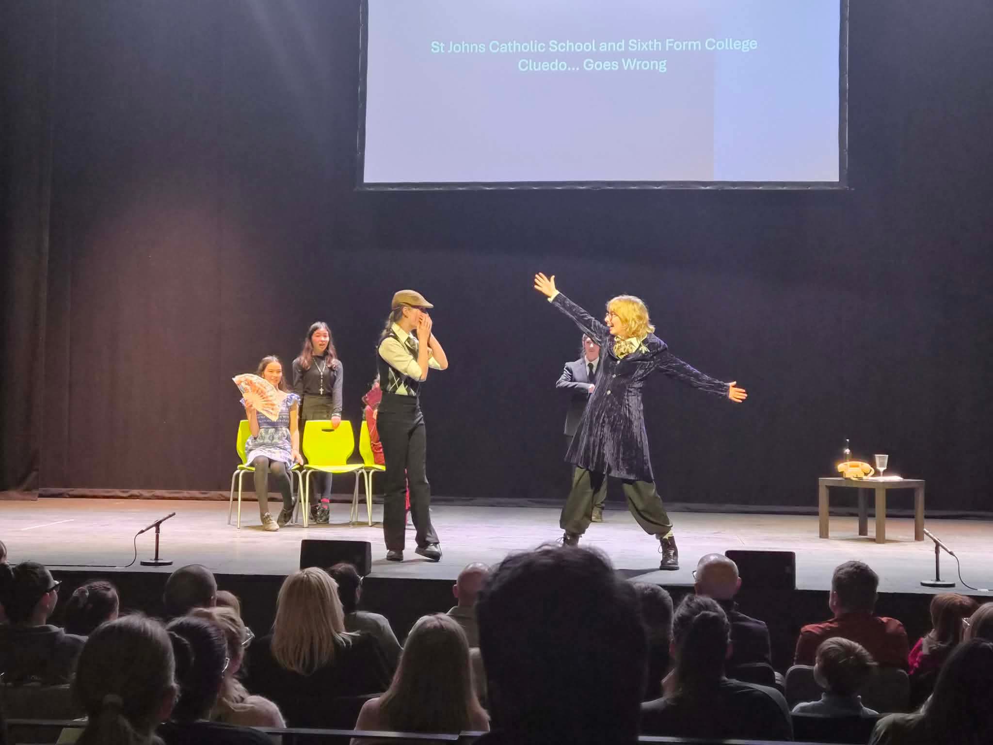 Performing in a professional theatre setting, St John’s students looked completely at home as they embraced this year’s festival theme, April Fools. Their performance, titled Cluedo Goes Wrong, was packed with humour and energy, drawing laughter from the audience throughout.